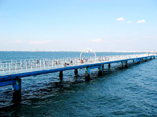 市原市海釣り施設は養老川河口近くの養老川臨海公園内の付属施設。東京湾に突き出た市原市海釣り施設は116mの連絡橋を経てTの字型になった300mの釣り専用桟橋の両側が釣り場となる。足元の魚礁に大物も潜む市原市海釣り施設はファミリーの釣りに最適だ。 |