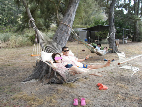 アロ〜ハ! 2013年7月3日、ハワイ2日目は、BBQランチ付きノースショア・ツアー。 BBQランチは、ノースショアの一番西側カエナ岬に近いYMCAキャンプ場 ![]() 渡ハする前にネット検索で見つけた『ノースショア・アドベンチャー&BBQツアー』は、ハワイ到着当日にツアー会社のトラベルドンキー・ワイキキで申込みしました。 ツアー名、『ノースショア・アドベンチャー&BBQツアー』の内容 「海の中までガイド付!」の安心サポートが人気のトラベル・クラブ(C T C)の「ノースショア・アドベンチャー・ツアー」に「誰もいない白砂シークレット・ビーチでのBBQランチ」が付いたノースショアの大自然を更に堪能して頂ける癒しのツアーです。 一般料金 インターネット料金 US$ 150 〜 催行(運営)会社C T C. R氏のオーナーツアーガイド ホームページのツアー紹介は、以下の通りです。 ■BBQツアー行程 07:50 アラモアナ/ワイキキ地区ホテル出発 -ドール・プランテーション(約40分) -夏(5-10月):シュノーケリング -冬(11-4月):海遊び、ハレイワ・ビーチでスイミング&リラックス、亀探し -ビーチBBQランチ 約2時間 -サンセット・ビーチ(約15分-30分) -ラニアケア・ビーチで「ウミガメの甲羅干し」見学(約10分-20分) -「ハレイワ看板」前での記念撮影(約5分) -ハレイワ・タウンでのショッピング(約30-40分) 18:15 アラモアナ/ワイキキ地区ホテル帰着 ●BBQツアーは、「この木なんの木」には立ち寄りません。 僕ら夫婦は、ノースショアー・ツアーが3回目ですが、 BBQランチ付きと海の中までツアーガイド付きというのは初めてです。 トラベルドンキーは、ワイキキにあるDFSの14階にある事務所にあります。 ハワイ滞在中のどこかで、この魅力的な予約が取れればいいなという気持ちで、 Trans Orbit Hawaii ink.とトラベルドンキーと書かれた部屋に入りました。 インターネット予約の受付が主な業務なのでしょうか、事務所には3人しかいません。 カウンターで『ノースショア・アドベンチャー&BBQツアー』の予約状況を尋ねると、 すぐに電話を取り上げました。 「運がいいですね。2人だったら明日(7月3日)予約が取れますよ。」という。 ぼくらは、即決です。 ついでに、7月5日のハナウマ湾の予約も取りました。 両方の代金を支払い、予約チケットを受け取りました。 『ノースショア・アドベンチャー&BBQツアー』料金は、インターネット料金と同じひとり150ドルでした。 翌朝の待ち合わせ時間は、8時45分。 15分以上遅れ、9時過ぎにツアーバンが到着しました。 白髪交じりのガイドは、迎えが遅れたわびを言うわけでもなく、 予約チケットをだすと、「○○さん、時間がないので、車にどうぞ」という。 車中には、2人の女性がいました。 ガイドは自分の名刺を渡しながら、流ちょうな日本語で自己紹介しました。 米国本土から20年前にハワイに来た。 海軍で横須賀にいた時、日本人の奥さんと知り合い結婚した。などなど 彼は、ひっきりなしにツアー客4人の名前を呼びながら話します。 ウトウトしたいのに、話しかけられるのでおちおちできません。 往路、ドールプランテーションで休憩です。 サービスのアイスクリームを食べ、時間まで土産品を見て時間を潰していました。 リピーターには、パイナップルも余り興味ありません。 次は、ツアーガイドがサポートしてくれる魅力的なシュノーケル。 シュノーケルをする場所は、ププケアビーチパーク内のスリーテーブルというビーチです。 ププケアビーチパーク内のスリーテーブルは、駐車スペースが少なく、いつもは駐車するのに苦労するそうです。 この日は、人気の少ないビーチでした。 理由は海を見てすぐわかりました。 シュノーケルポイントだというスリーテーブルと呼ばれる3つの岩まわりは、白波が洗っていました。 ところが、ここで問題発生です。 海の中までガイドするはずのツアーガイドは、一緒に海には入らないという。 安全確保のためのライフジャケットの用意もしていませんでした。 今更文句を言っても始まりませんが、 『ノースショア・アドベンチャー&BBQツアー』は、 看板に偽りありです。 「海の中までガイド付!」の安心サポート」は、ありません。 ぼくらがこの『ノースショア・アドベンチャー&BBQツアー』を選んだ理由は、 少々不安があるシュノーケルで、”海の中まで安心サポート!”があったからです。 次から次に波が寄せているスリーテーブルズなのに、 「自分は荷物の番をしているから、あなた達だけでシュノーケルを楽しんできて!」はないでしょう。 ツアー会社で申し込む時、 『シュノーケルで海の中まで安心サポート!』のことを再度確かめました。 ツアー会社のカウンター嬢の答えは、 「シュノーケルをするツアー客と一緒に海に入り、 魚や海亀のポイント場所まで泳いで連れて行ってくれますと書いてある通りです」という。 妻と同乗していた女性2人は、シュノーケルをするために直前に酔い止めを飲み、張り切っていた。 それなのに、オーナーツアーガイ